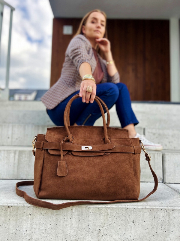 Laura Biaggi torebka worek z frędzlami boho eko zamsz brązowa