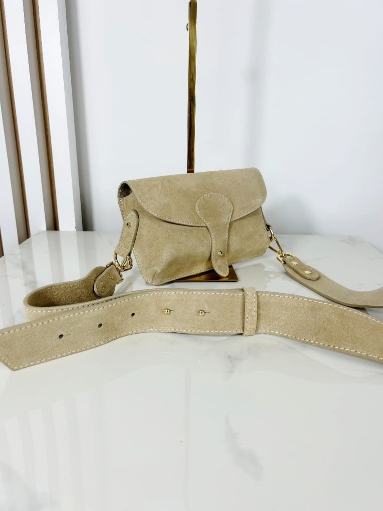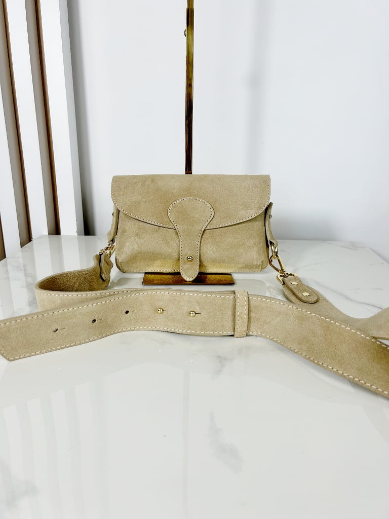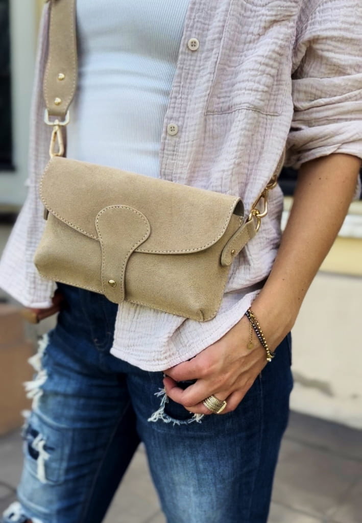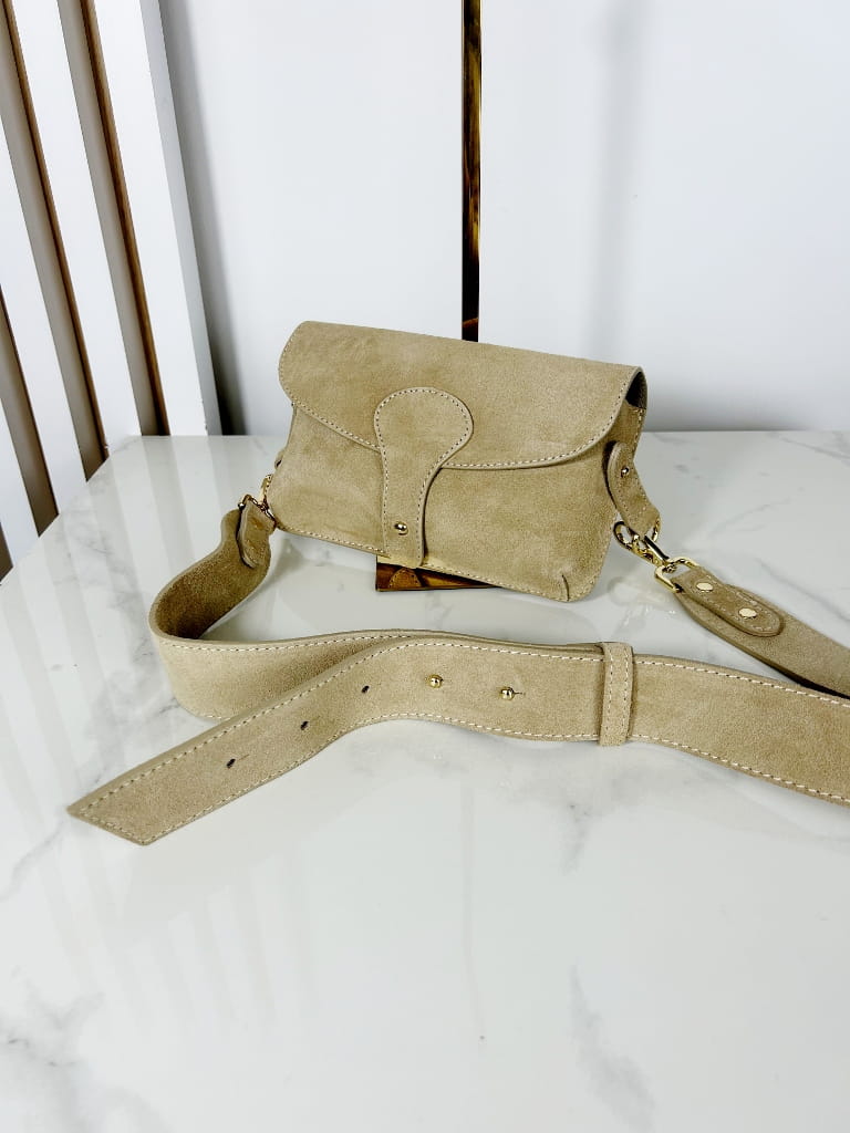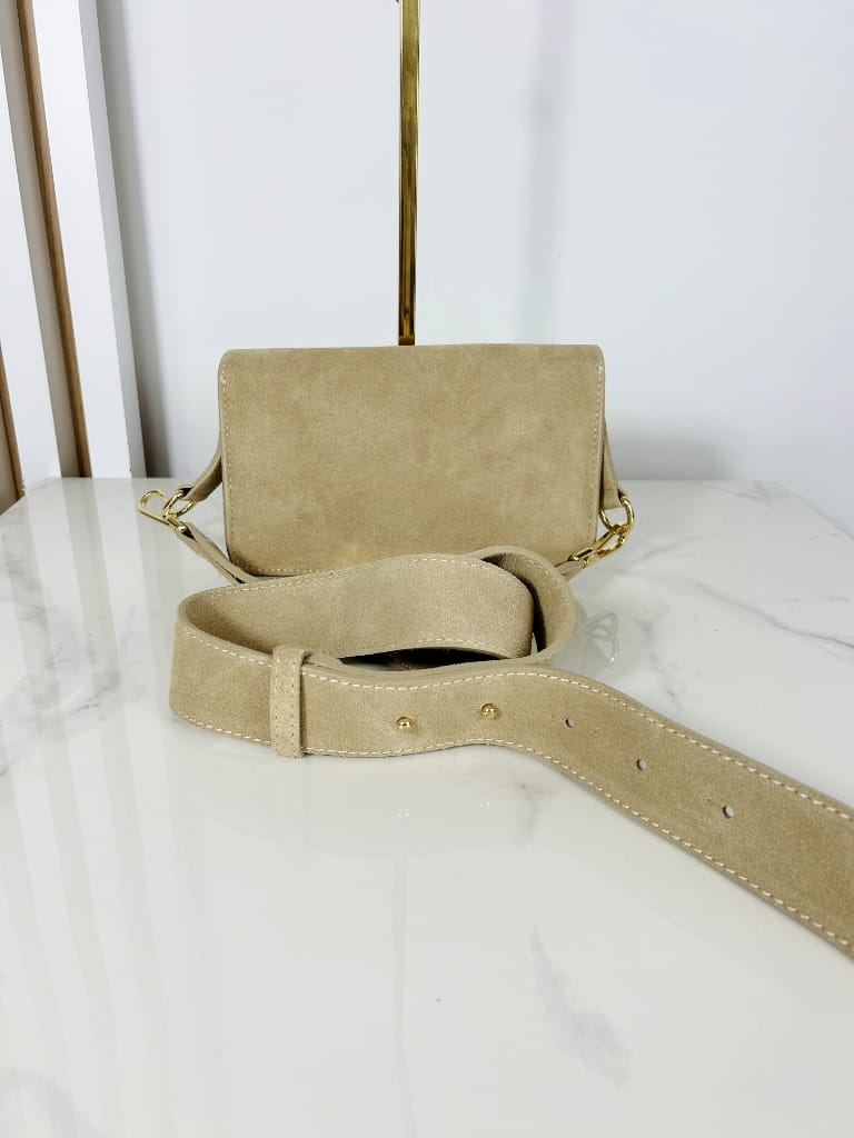 Borse in Pelle zamszowa mała torebka listonoszka beżowa