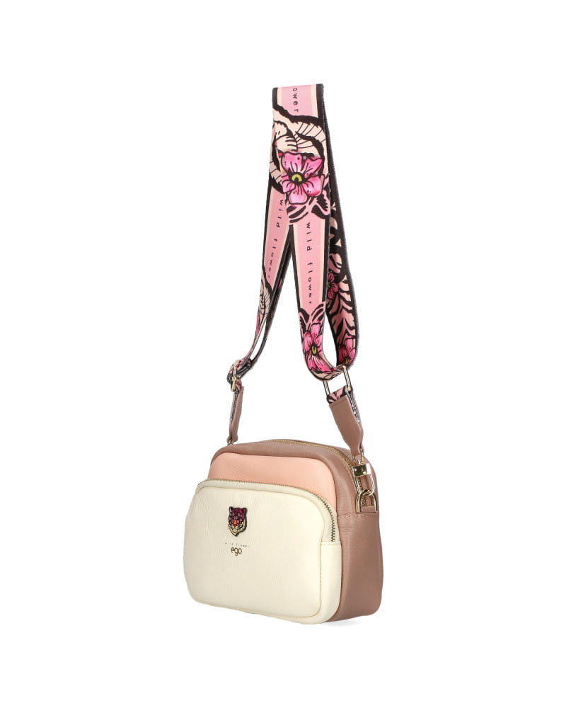 Ego skórzana torebka bułeczka różowa z beżowym kolorowa