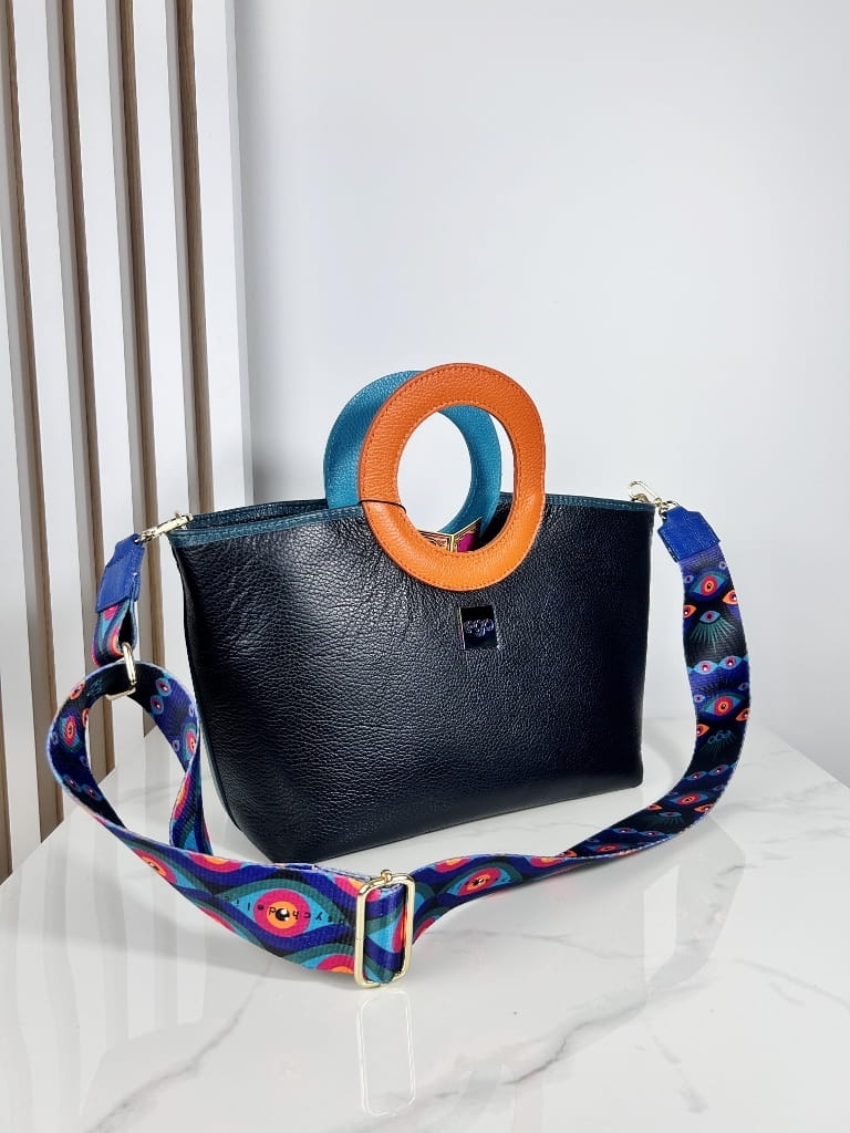 Największym atutem tego projektu jest wyjątkowa rączka w kształcie koła, która dodaje całości artystycznego wyrazu i czyni torebkę unikatowym dodatkiem. Dzięki dwustronnej konstrukcji można dopasować jej wygląd do nastroju i okazji, co czyni ją niezwykle wszechstronnym modelem.