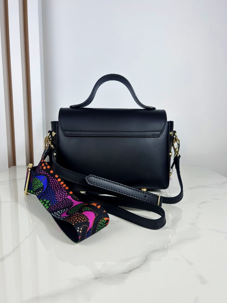 W zestawie znajdują się dwa doczepiane paski – szeroki, kolorowy pasek idealny do casualowych stylizacji, oraz wąski, skórzany pasek bez loga, który dodaje torebce klasycznej elegancji. Dzięki regulacji długości pasków, torebkę można nosić na ramieniu, przez ramię, a także w dłoni, korzystając z wygodnej rączki.