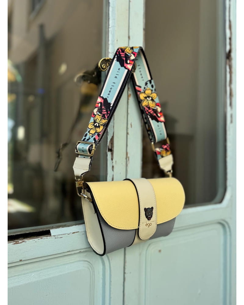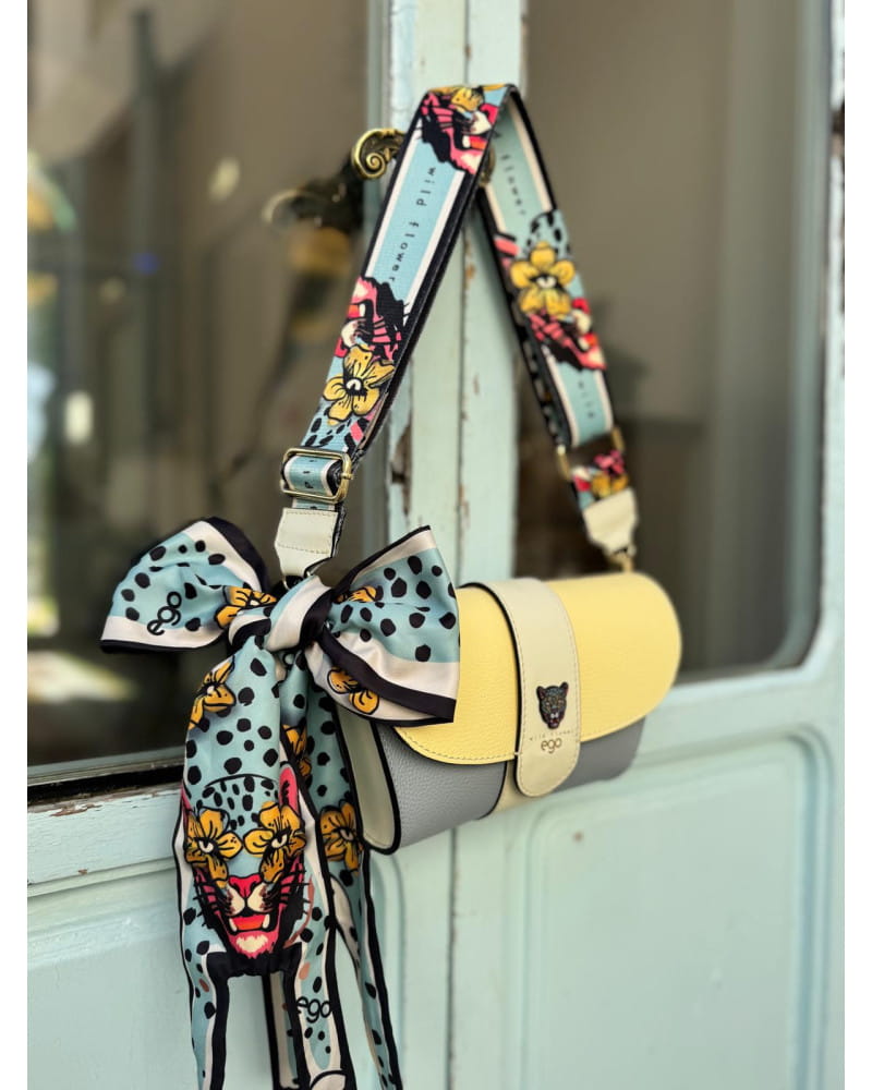 Ego skórzana torebka z apaszką kolorowa żółta z niebieskim