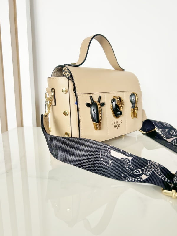 Jej klasyczna forma kuferka z mocnym, etnicznym akcentem oraz ozdobnymi ćwiekami po bokach tworzy niepowtarzalne połączenie kobiecości i charakteru.