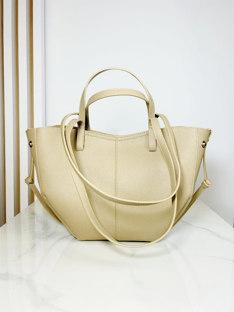 Wykonana z wysokiej jakości skóry ekologicznej w beżowym odcieniu latte, zachwyca swoim modnym, geometrycznym fasonem.