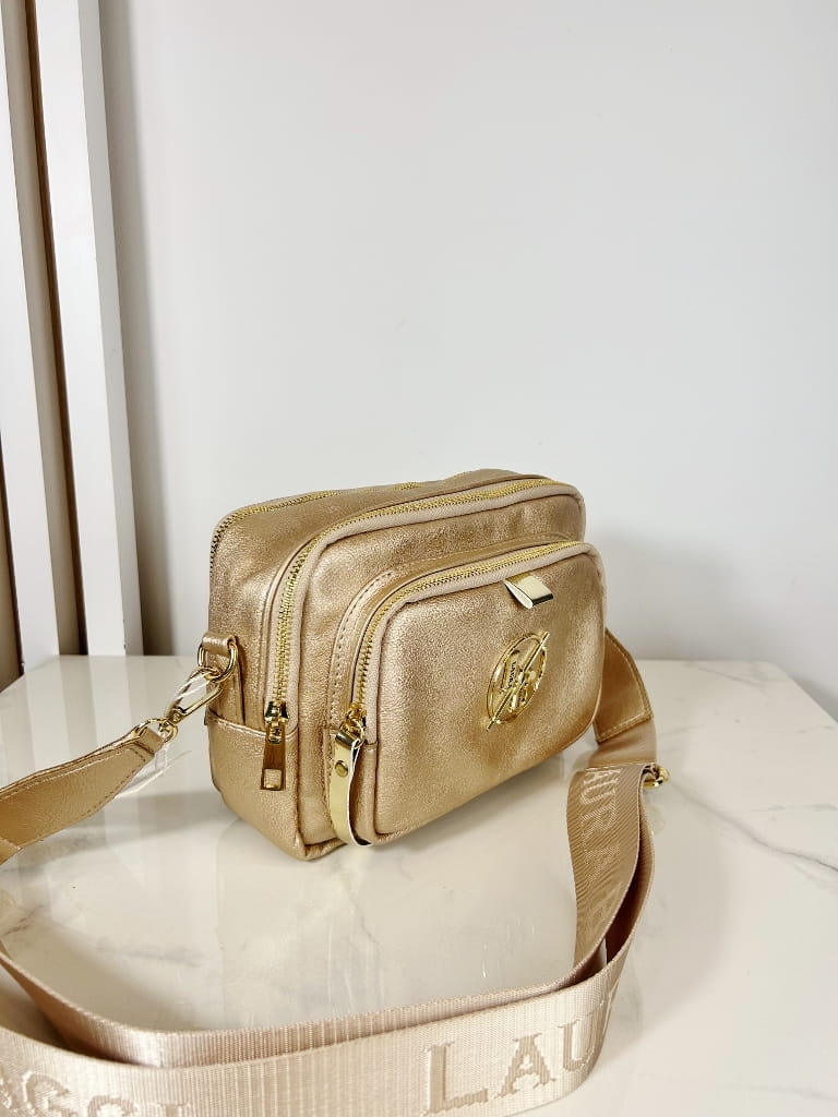 Na przedniej kieszonce znajduje się efektowne, biżuteryjne logo Laura Biaggi, które dodaje całości eleganckiego charakteru.