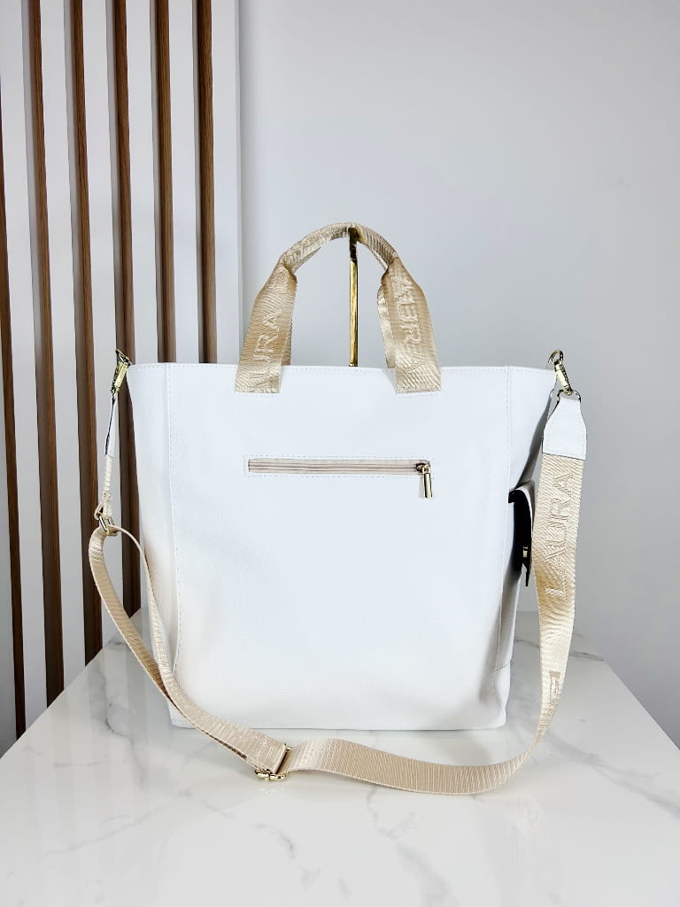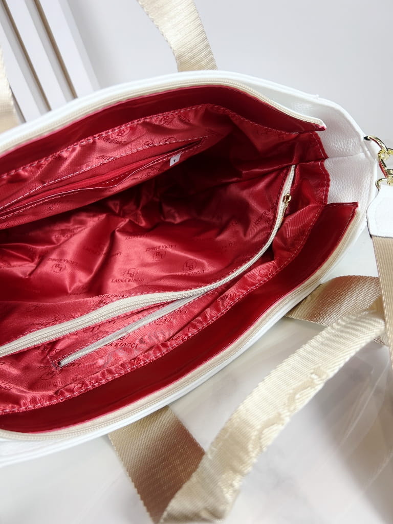 Laura Biaggi Torebka Shopper Biała z Kieszonkami