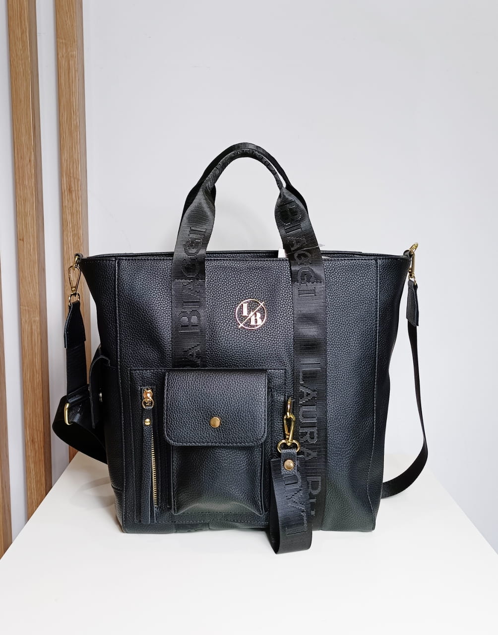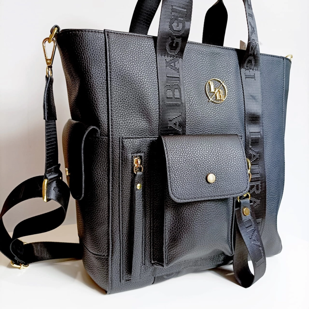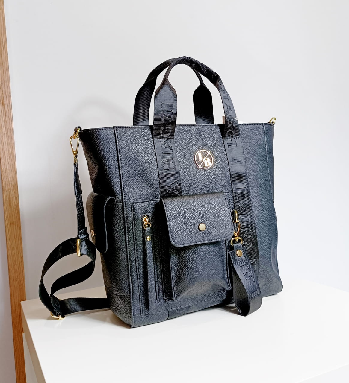 Laura Biaggi Torebka Shopper Czarna z Kieszonkami