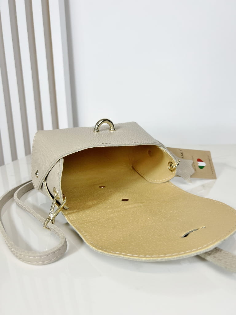 Mini kuferek wyposażony jest w praktyczny paseczek, dzięki któremu możesz nosić go wygodnie na ramieniu lub w dłoni – w zależności od okazji i stylu. Surowe wnętrze podkreśla minimalistyczny charakter modelu, zachowując jednocześnie jego lekkość i funkcjonalność.