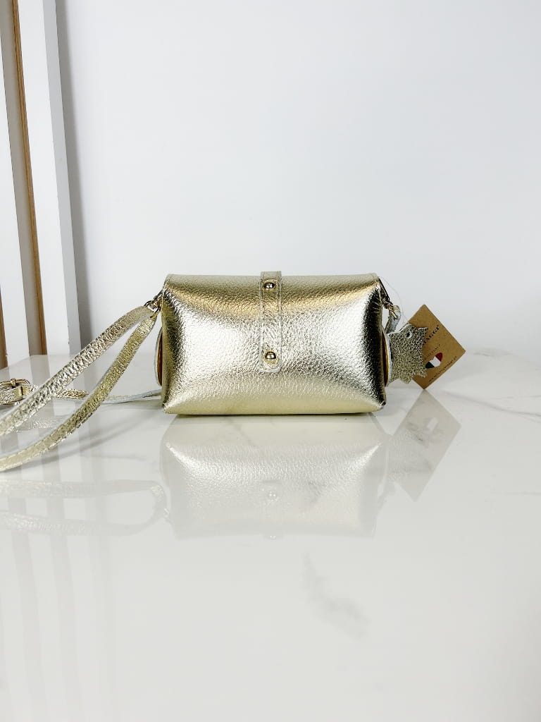 Wyjątkowa, elegancka i pełna charakteru – złota torebka mini kuferek od Laura Biaggi to propozycja dla kobiet, które kochają stylowe dodatki przyciągające spojrzenia. Jej efektowne, połyskujące wykończenie sprawia, że idealnie dopełni zarówno wieczorowe stylizacje, jak i bardziej odważne, modowe zestawy.
