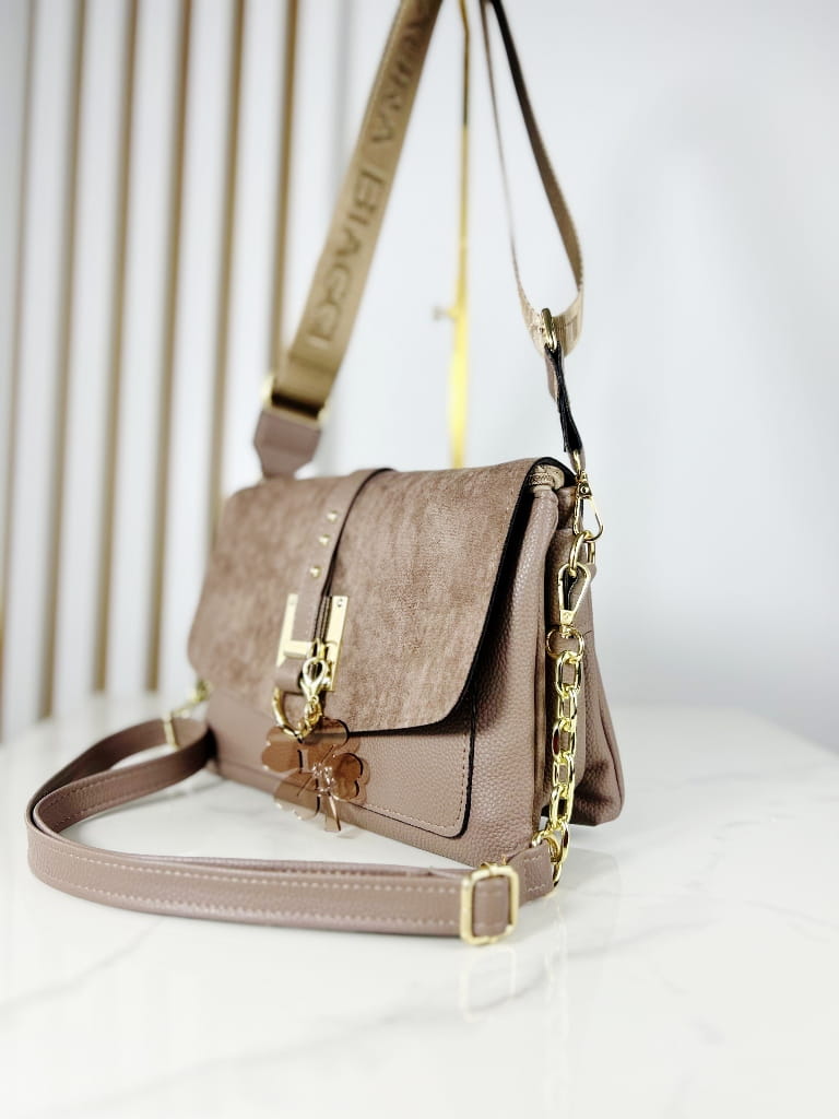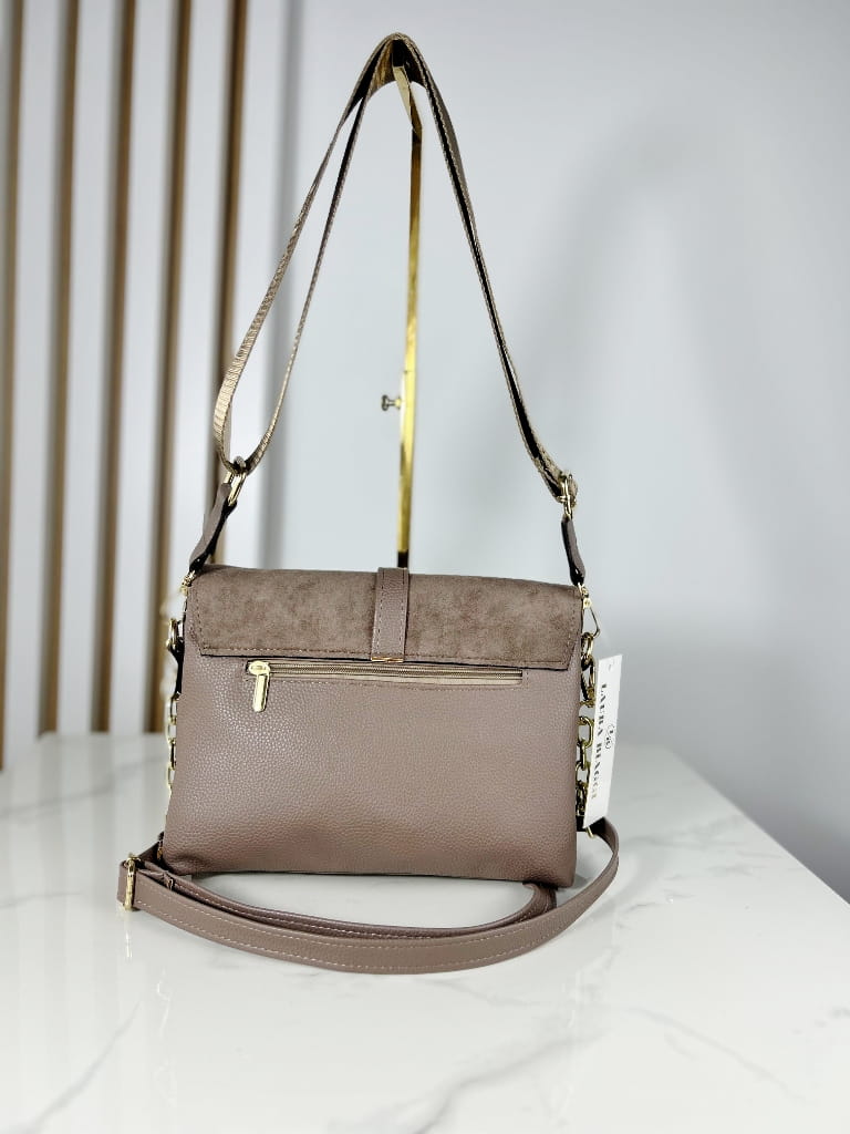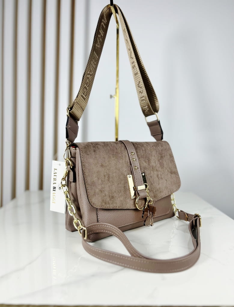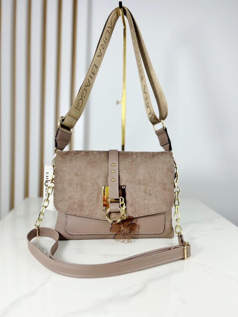 Laura Biaggi torebka listonoszka z koniczyną taupe eko zamsz