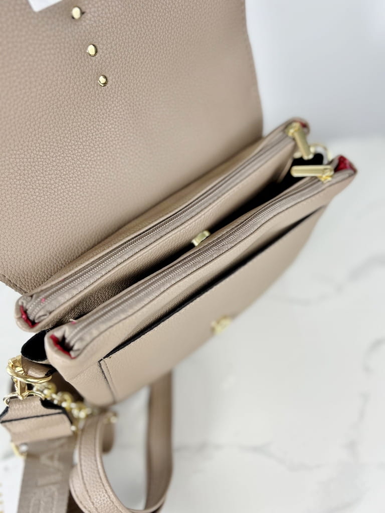Laura Biaggi torebka listonoszka z koniczyną jasno taupe