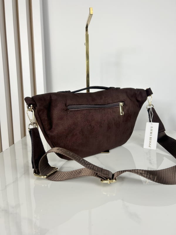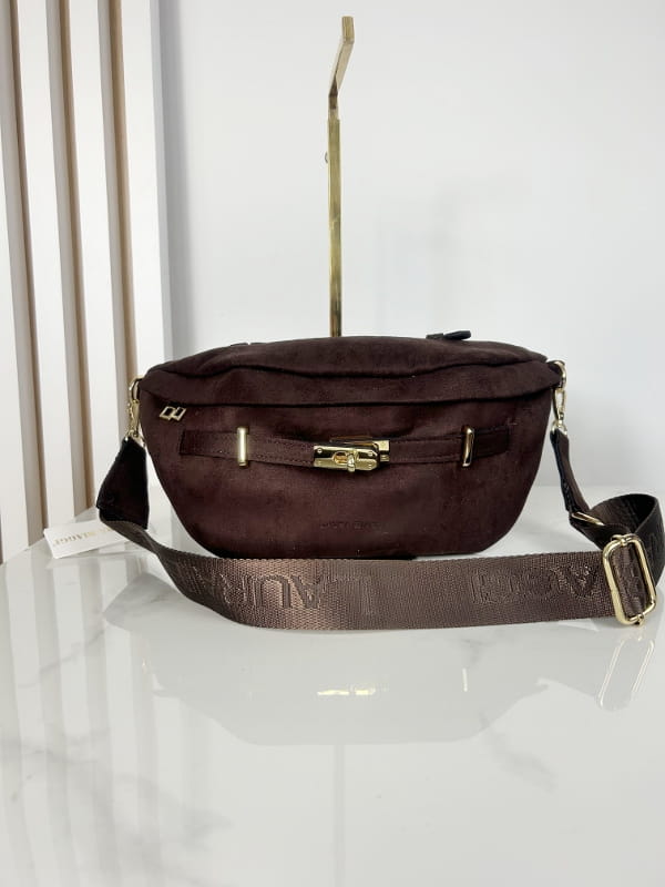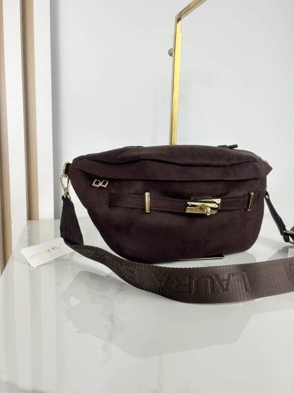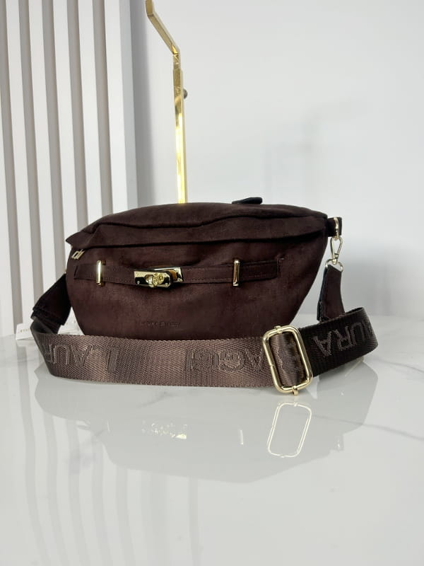 Laura Biaggi torebka nerka saszetka brązowa eko zamsz