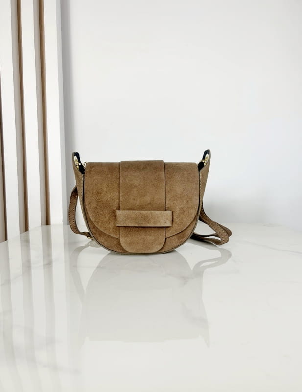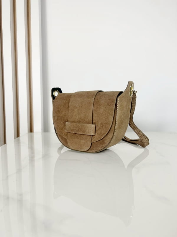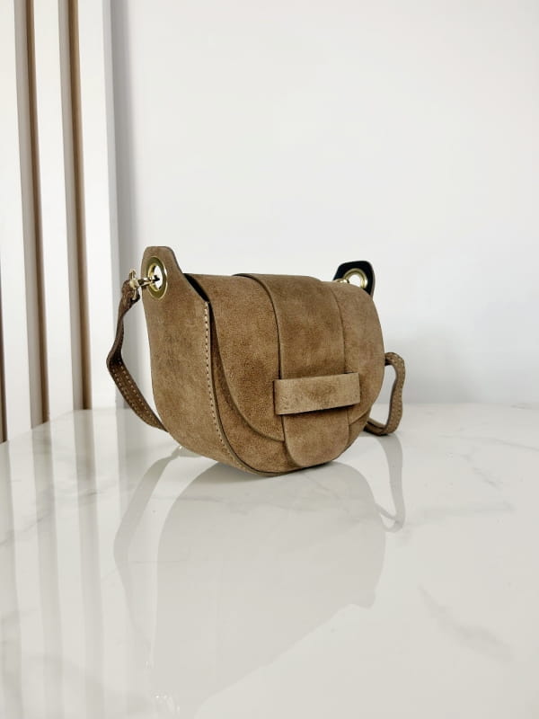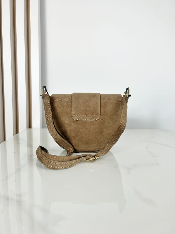 Włoska zamszowa skórzana torebka listonoszka beżowa